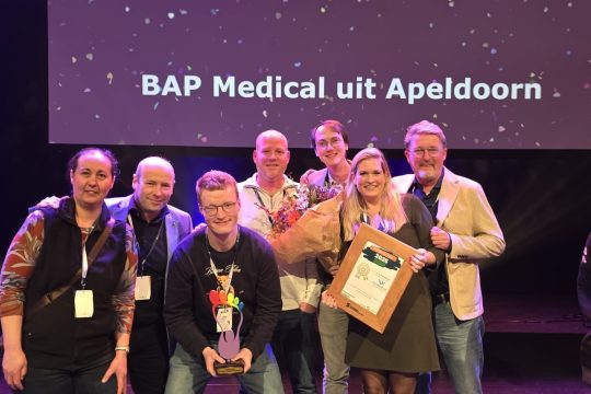 09-12-2025 BAP Medical We’ve won! We won the Audience Award at the Sociaal Ondernemen Werkt Awards, celebrating our amazing social workplace colleagues in Apeldoorn.